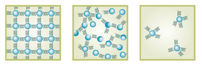 인력은 물질의 상태에 따라 다르다. 고체 상태에서는 분자 사이의 인력이 매우 강하고 액체 상태의 분자 사이의 인력은 고체보다 약하다. 기체 상태는 분자 사이의 인력이 거의 작용하지 않는다.